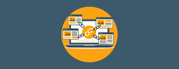 משחב נייד ובמרכזו סימן של קישור המחובר ל4 דפי אינטרנט שמציגים מדריך קישורים חיצוניים